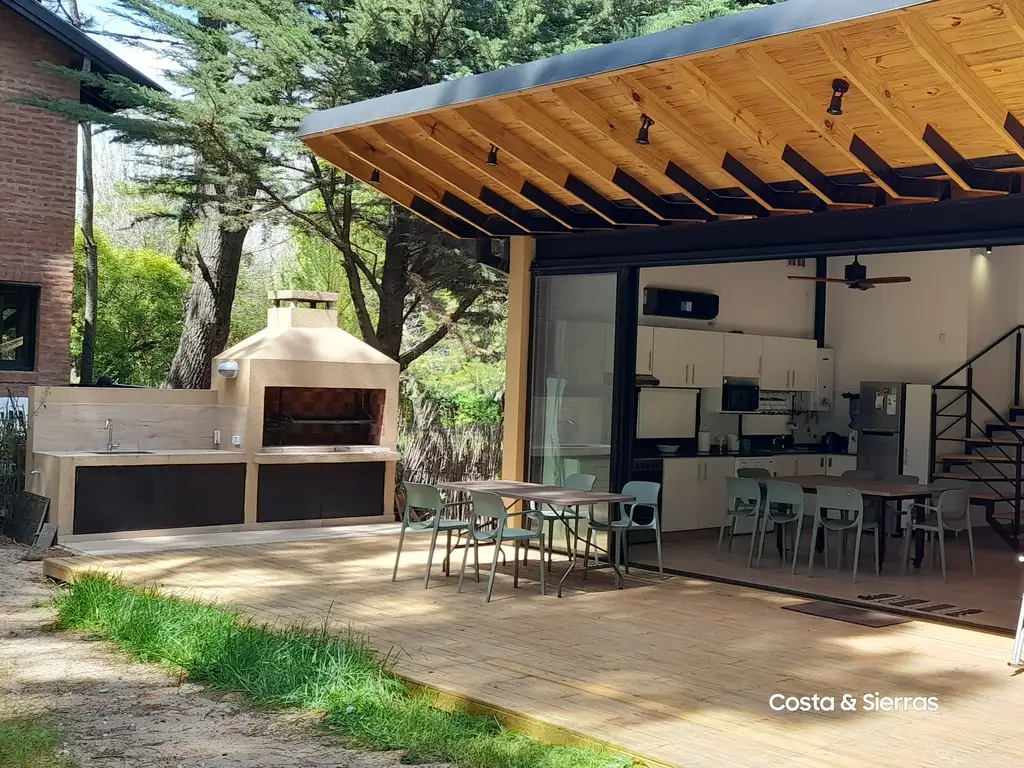 Amplio estar comedor en concenpto abierto con acogedor living con TV que se destaca por sus grandes ventanales que se abren, logrando una fluida integración con el exterior. 2 aires acondicionados, 2 ventiladores de techo.