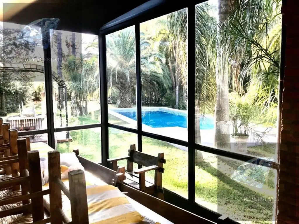 La propiedad, que tiene un sistema de seguridad completo, dispone de 2.230m2, distribuidos en 410m2 cubiertos (en dos plantas, más un quincho) y 1.820m2 descubiertos (parque, terraza y piscina 4,5 x 10 metros).