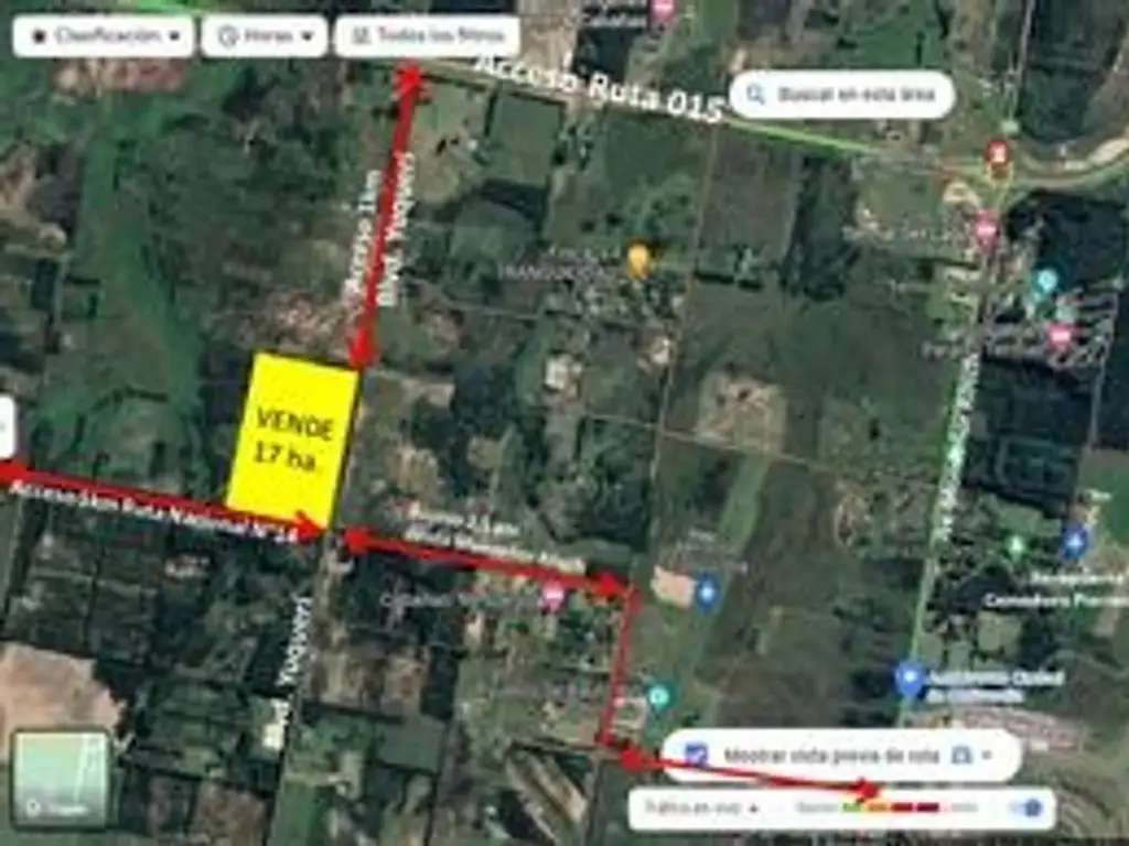 -Acceso desde Ruta 015 a 1 km (Norte).