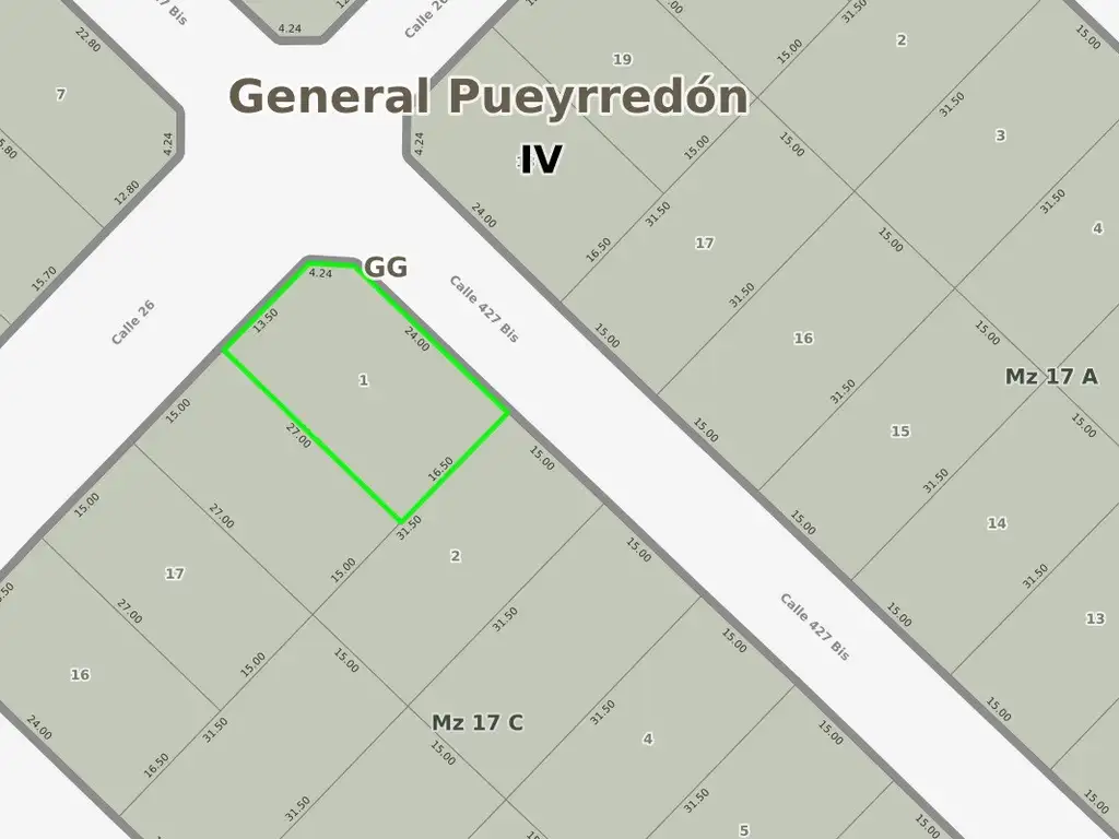 Lote libre de esquina de 13,50x24m2. Total 441m2