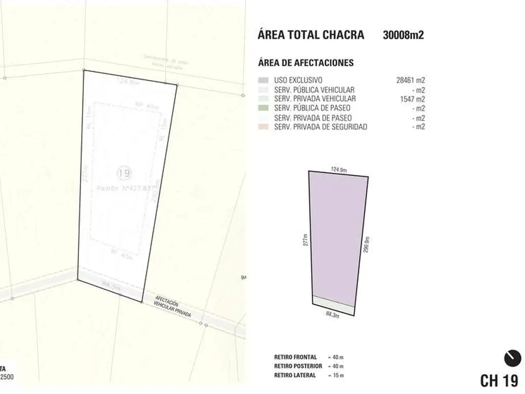 área de uso exclusivo: 28.461m2