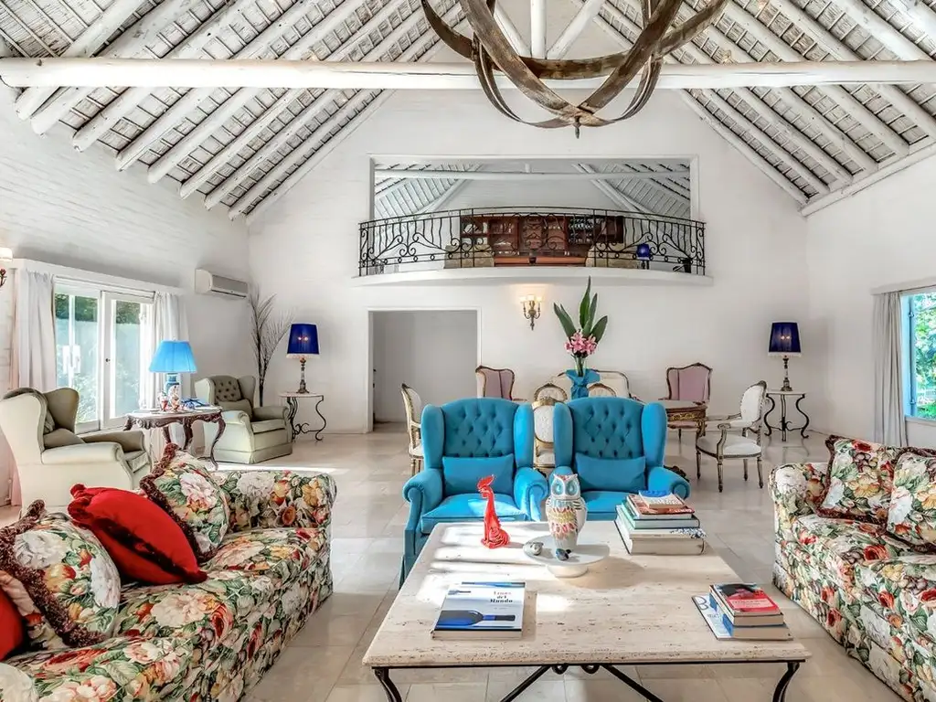 Esta excelente propiedad está formada por una Casa Principal de 700 mts construidos y se desarrolla en 2 plantas con pisos de mármol Botichino. Una central telefoníca comunica todos los ambientes, en los cuales tienen aparatos Bang Olufsen.