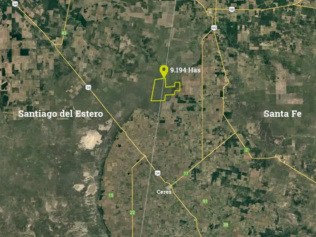 9.194 Has. ubicadas en la zona de la cuenca del Río salado a la altura de la ciudad de Tostado (35 km al sur).- A 9km de Ruta Nacional No 95 de tierra y a 21km aprox. de la Ruta pavimentada San Cristobal- Tostado.- Se encuentra detrás de las Estancias Las Norias y La Florida.