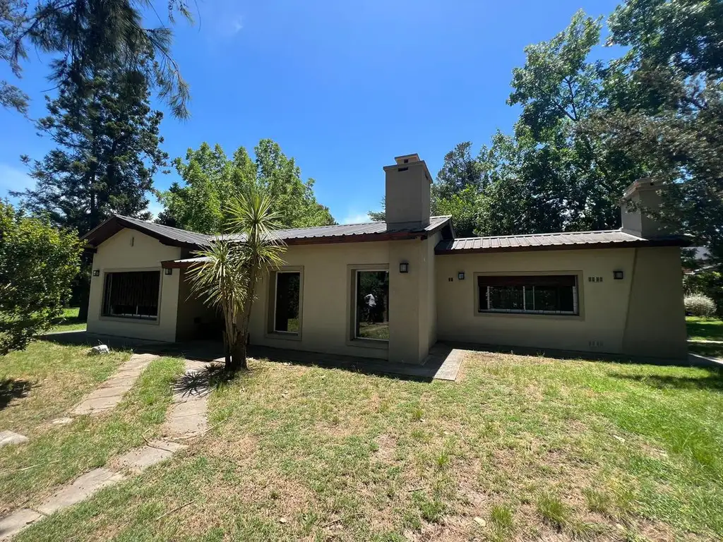 Chalet en una planta; cocina comedor, living, tres dormitorios, baño completo. Pileta con filtro . Quincho con parrilla. Hermoso parque libre.