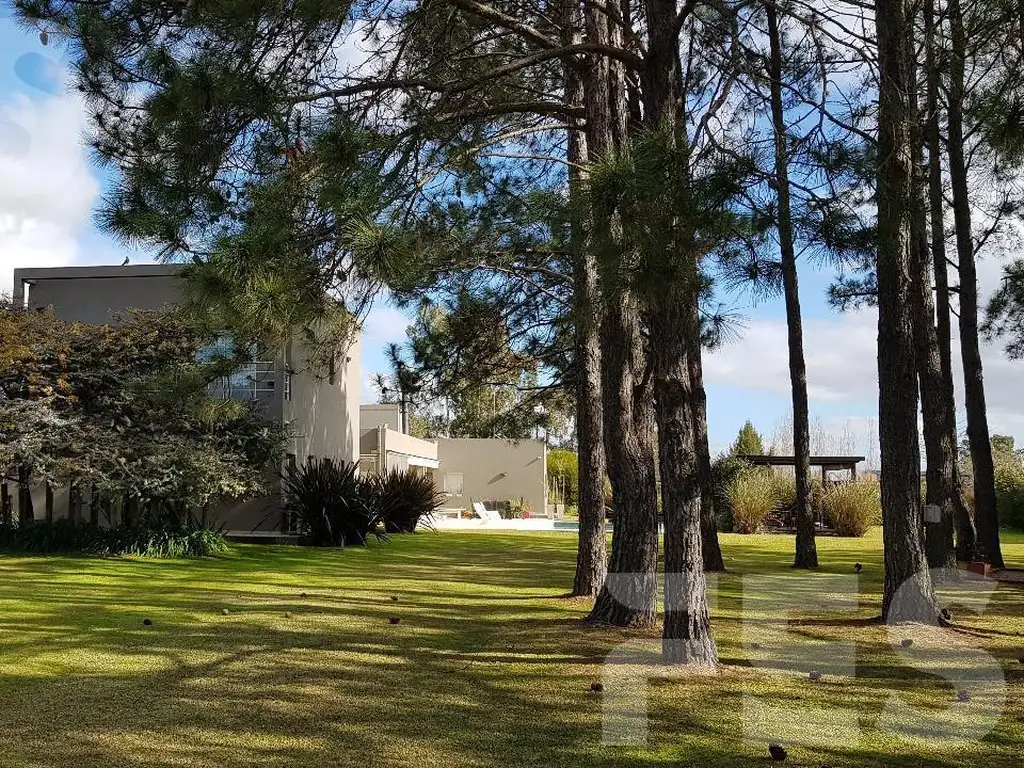 Lote parquizado de 3.200 m2 con un imponente bosque de 24 pinos y riego automático.