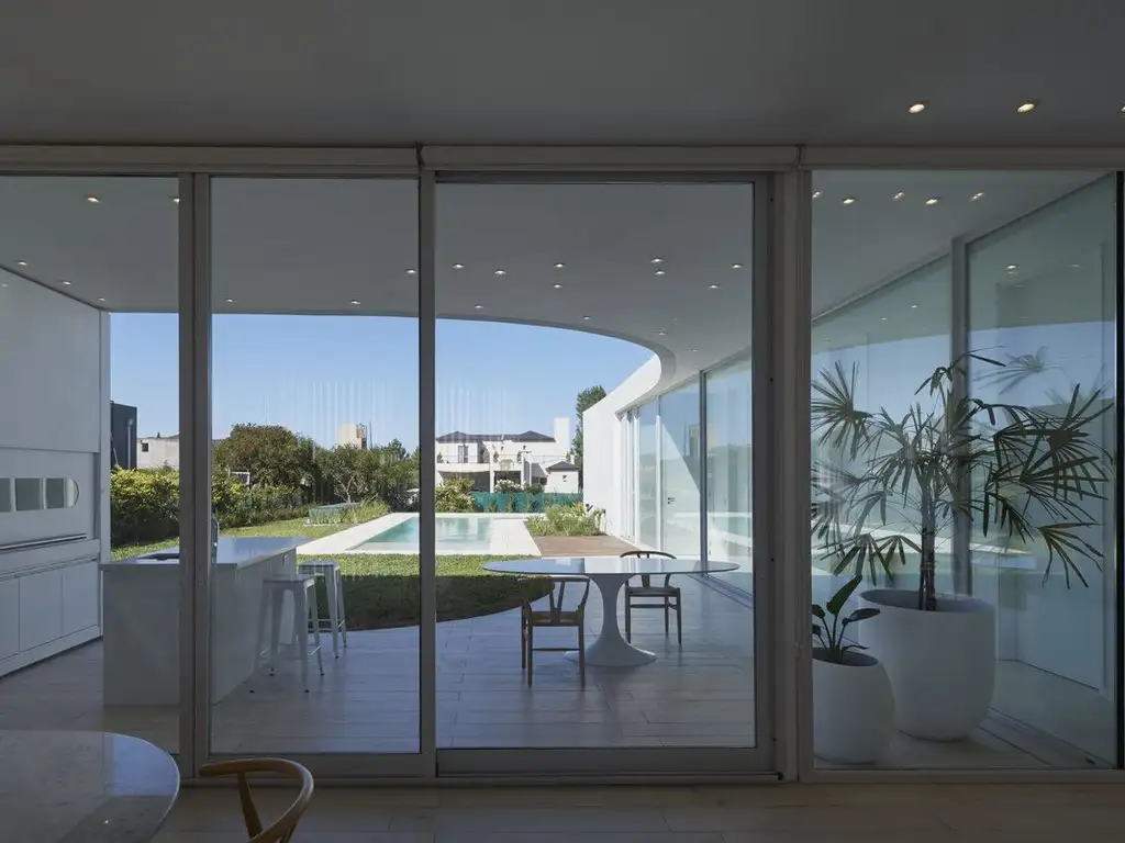 Residencia de arquitectura contemporánea, desarrollada íntegramente en planta baja, con techos de 3 metros de altura y grandes aberturas de piso a techo con DVH 4+4 laminado de seguridad, que garantizan máxima luminosidad, aislación y conexión con el exterior.