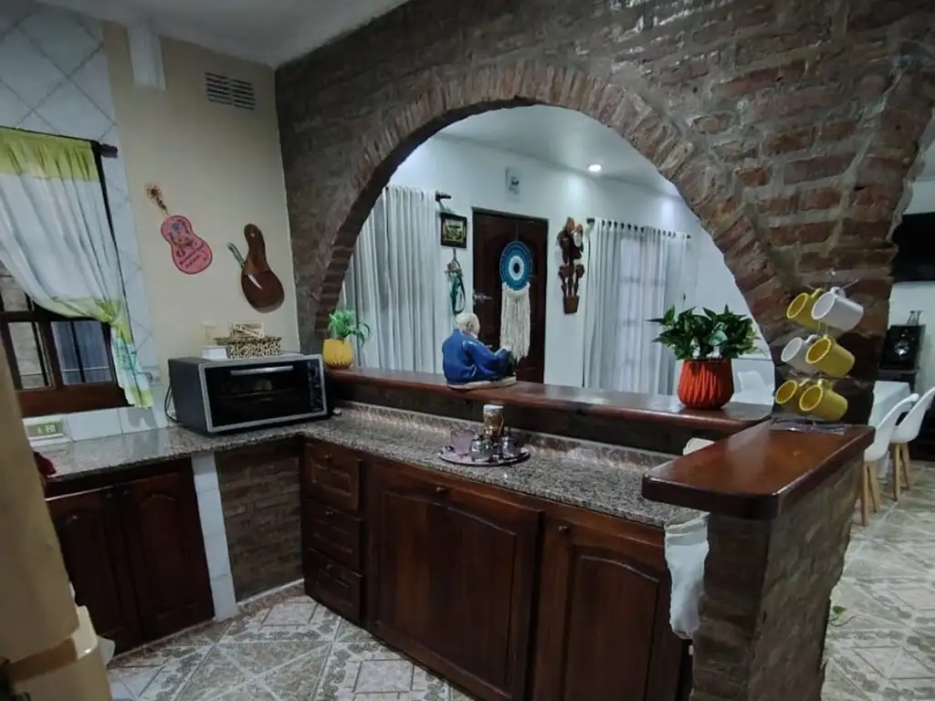 Muy buena casa en esquina, ingreso a amplia cocina comedor separada por barra desayunadora, cocina totalmente equipada con muebles sobre y bajo mesada, baño completo, amplio patio embaldosado. en PA: 3 dormitorios amplios muy luminosos y baño completo. espacio amplio a terminar en esquina.