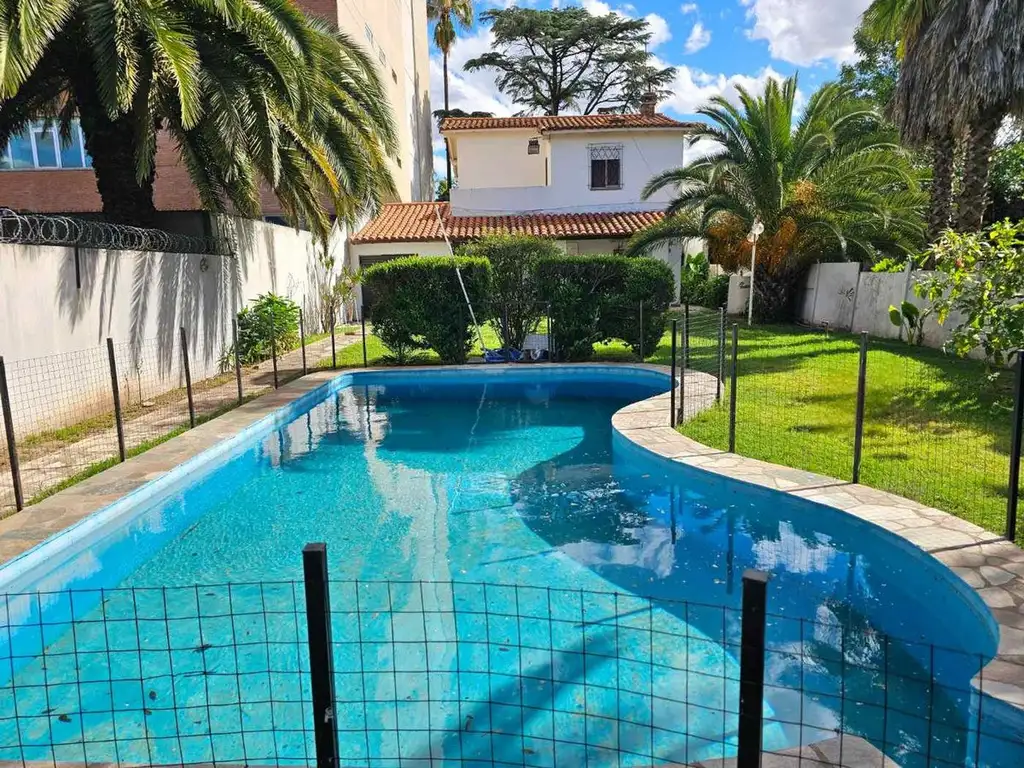 La propiedad se distingue por su impresionante terreno, que incluye un parque al frente y un jardín al fondo. En el corazón del jardín, una pileta de 9 x 4,5 metros promete momentos inolvidables durante el verano, acompañada de un quincho con parrilla que hará de tus reuniones un éxito. Al fondo del lote, un departamento de 2 ambientes con baño y cocina ofrece espacio adicional para visitas o segunda familia.