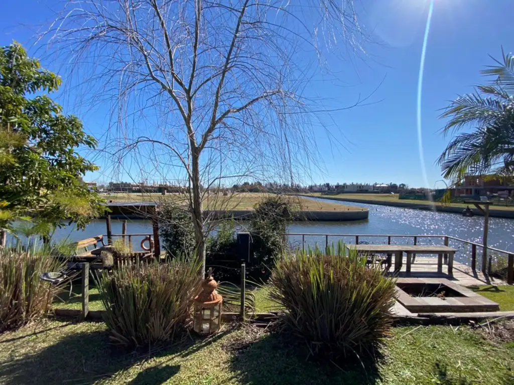 Galería. Piscina climatizada de 12 metros con jacuzzi y solárium. Jardín totalmente parquizado con sistema de riego automático y sector de fogonero. Cochera cubierta cerrada para dos autos grandes. Dos muelles privados con vistas inmejorables al atardecer.