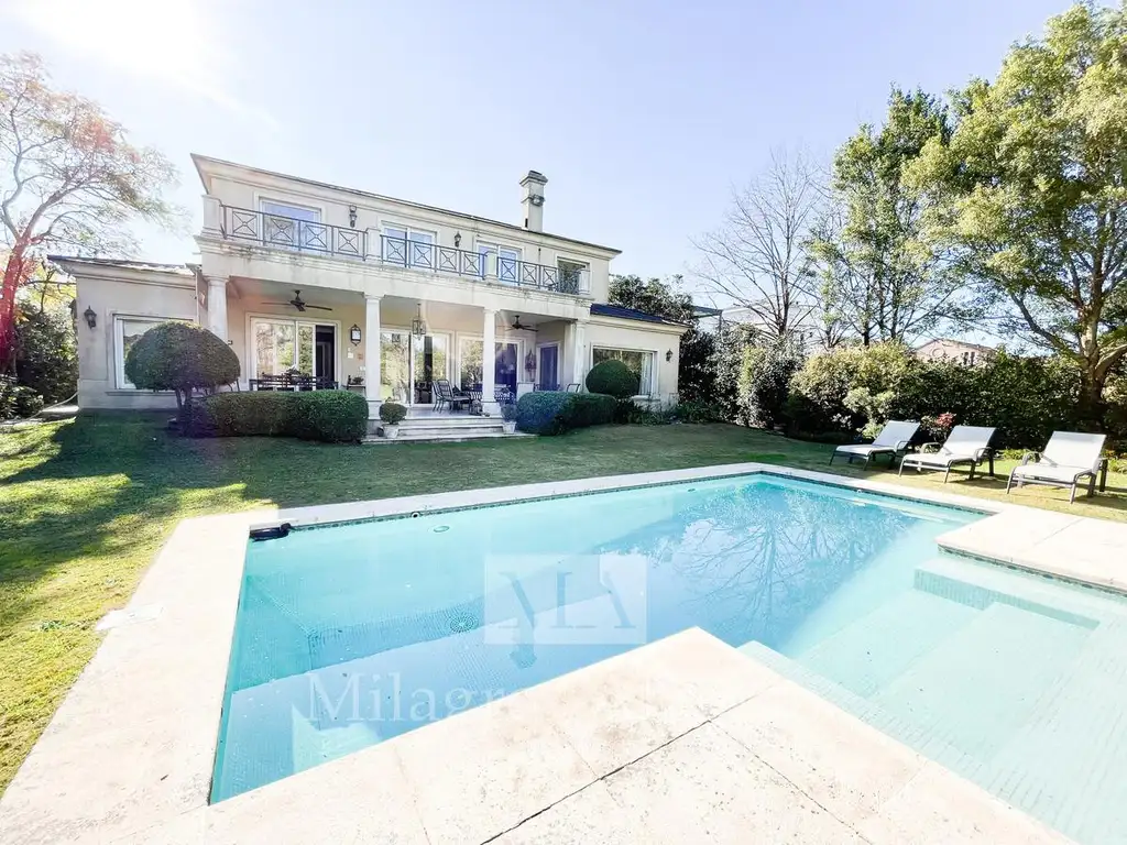 Super suite principal en PB con escritorio, doble vestidos, baño y dormitorio mirando al jardín y al golf. Desde la suite se puede acceder a la galería.