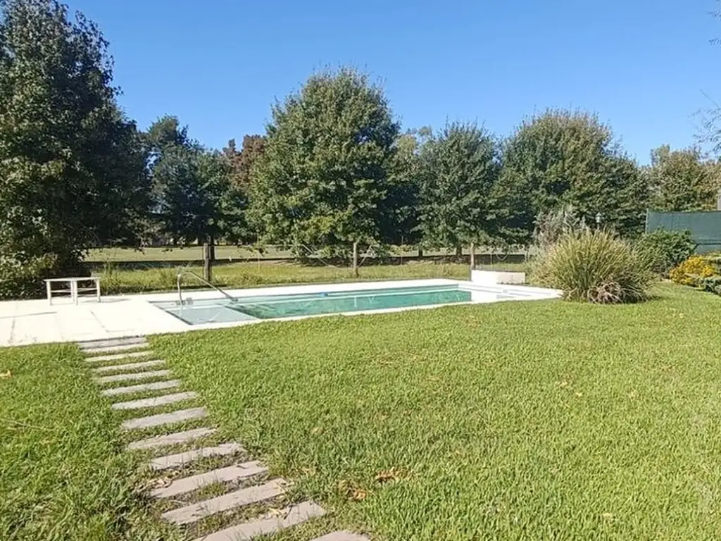 La propiedad esta desarrollada en dos plantas. La planta baja se compone de un amplio living con comedor separado, cocina independiente con comedor diario y lavadero separado, un dormitorio con baño en suite y vestidor, otro baño completo con bañera, quincho cerrado con parrillero, gran jardín con pileta, y estacionamiento cubierto para dos autos. Cuenta con electricidad, agua de pozo no potable, gas, pozo séptico.