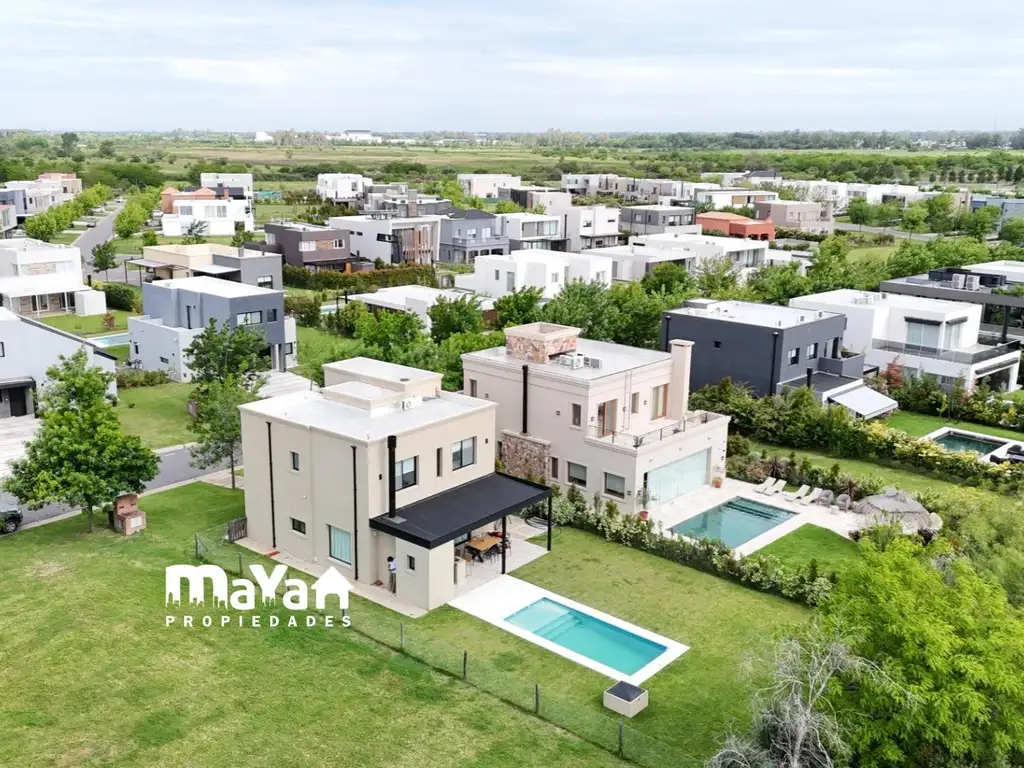 Moderna casa en dos plantas ubicada en el barrio Las Araucarias, dentro del prestigioso desarrollo Puertos del Lago, Escobar.