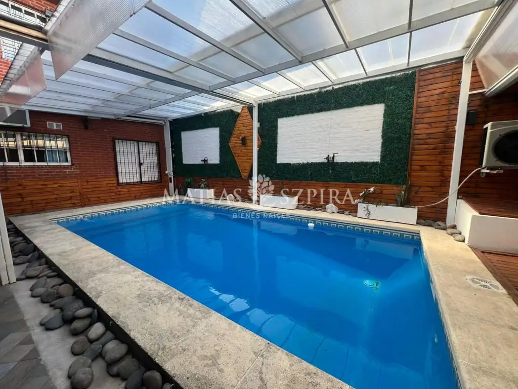 Mediante puertas ventanas se accede a la pileta climatizada, con techo cubierto corredizo, ideal para hidroterapias.