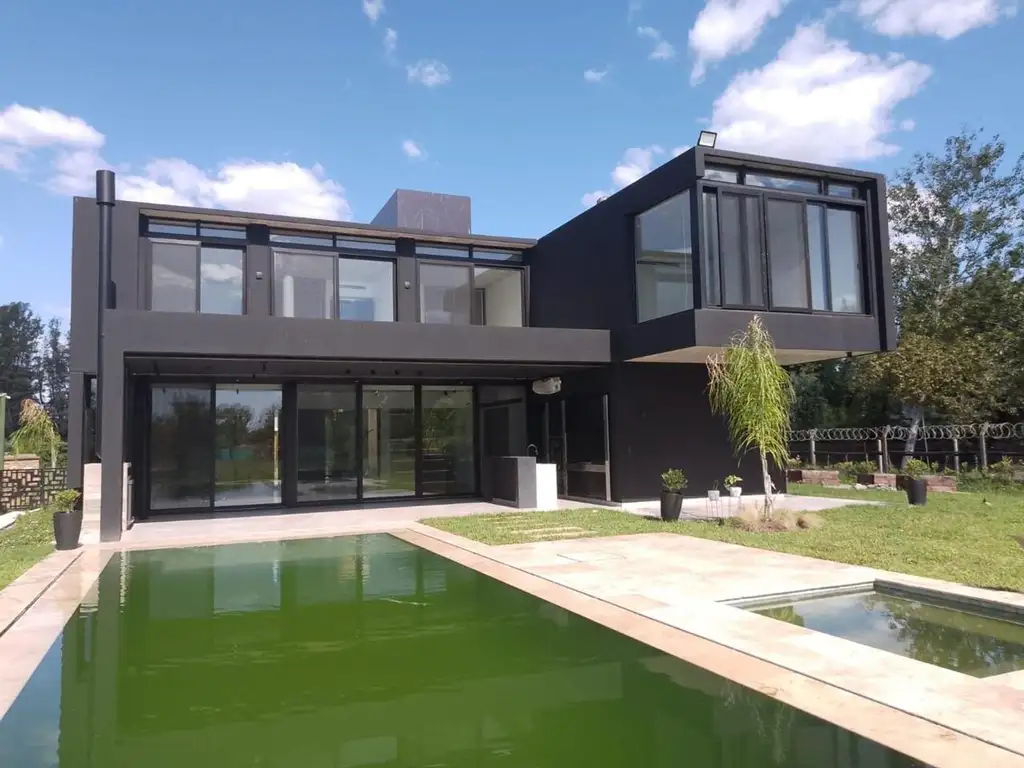 En el exterior de la propiedad hay una gran galería con parrilla y horno con vista a un enorme parque con piscina, jacuzzi, fogonero y huertas.