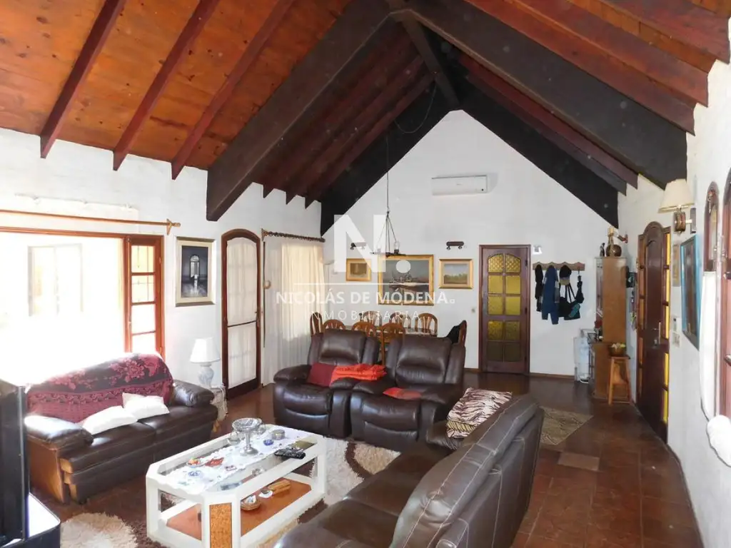3 dormitorios 2 baños 1 suite living comedor con estufa a leña ac cocina con lavadero barbacoa cerrada completa muy lindo parque con cerramiento y piscina muy bien amueblado loza radiante garaje