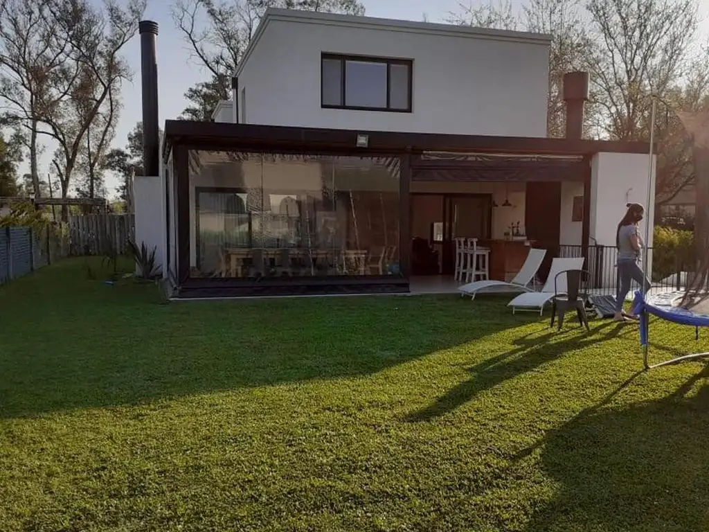 Amplia galeria cubierta con parrilla barra, mesa para 10 personas.