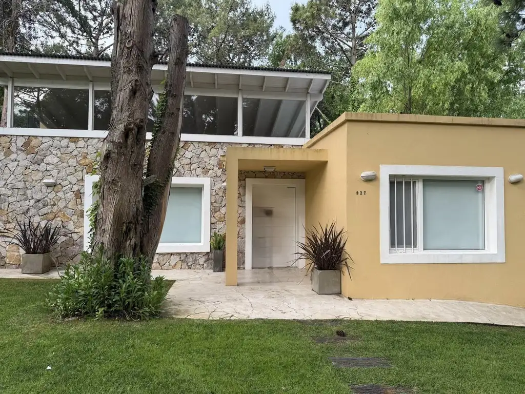 Exterior:Parque totalmente forestado,Pileta / jacuzzi climatizado, parrila, juego de living exterior y camastros ideal para reuniones familiares y sociales