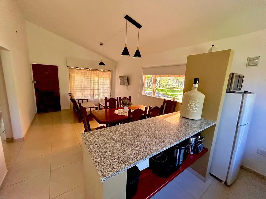 Living–comedor amplio y acogedor, integrado a la cocina con barra desayunadora