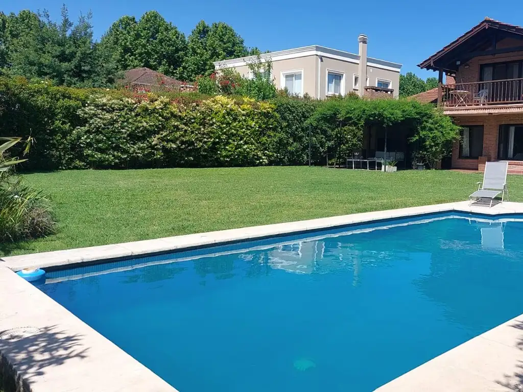 Afuera: galeria con gran parrilla, living exterior, fogonero y gran jardín parquizado pileta grande