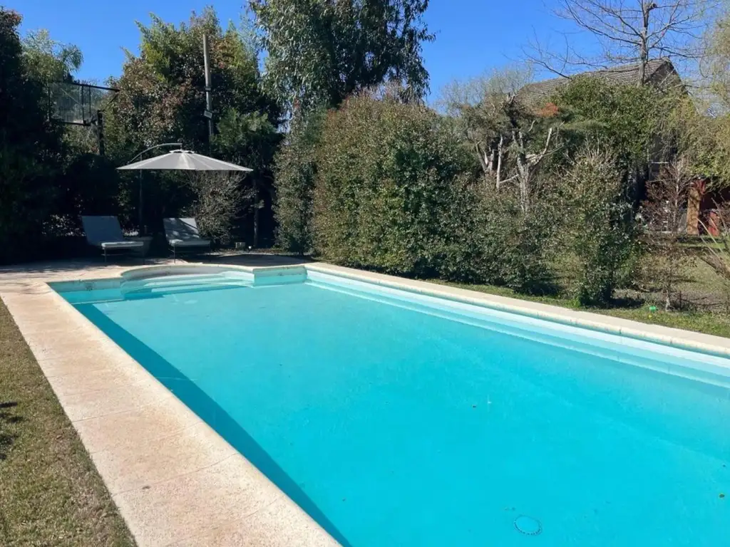 Pileta cercada con solárium y metegol, perfecta para el disfrute familiar.