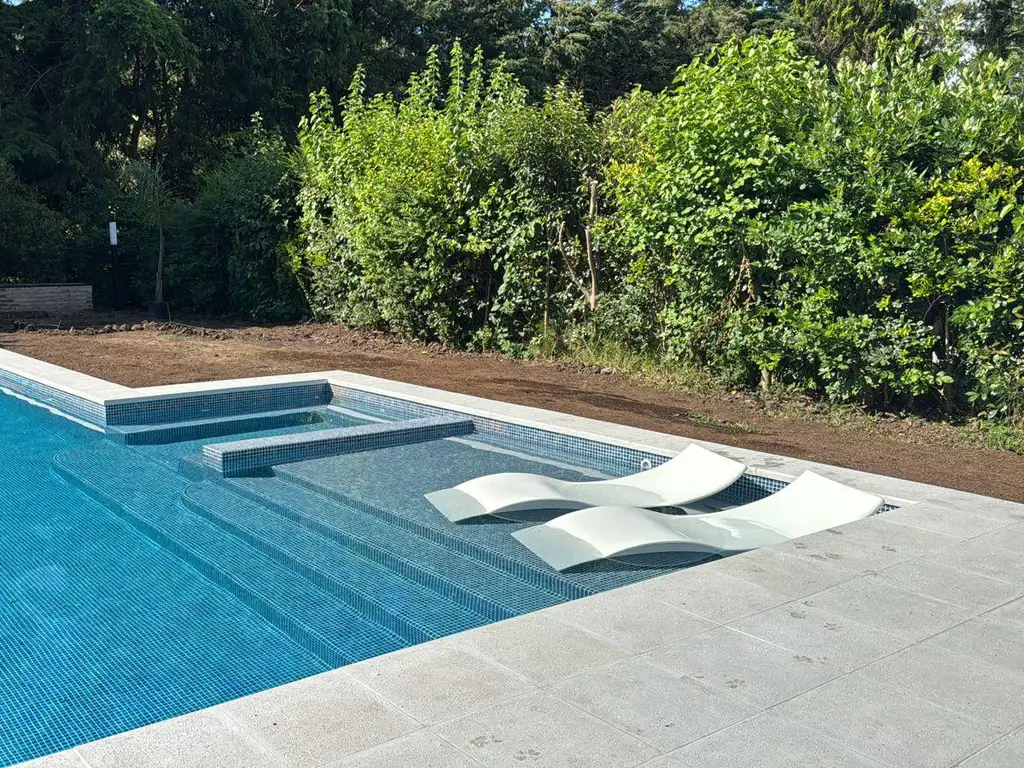 En el exterior independiente un gran quincho con parrilla y cocina totalmente equipada, la pileta amplia se extiende sobre lote de 800 mts.