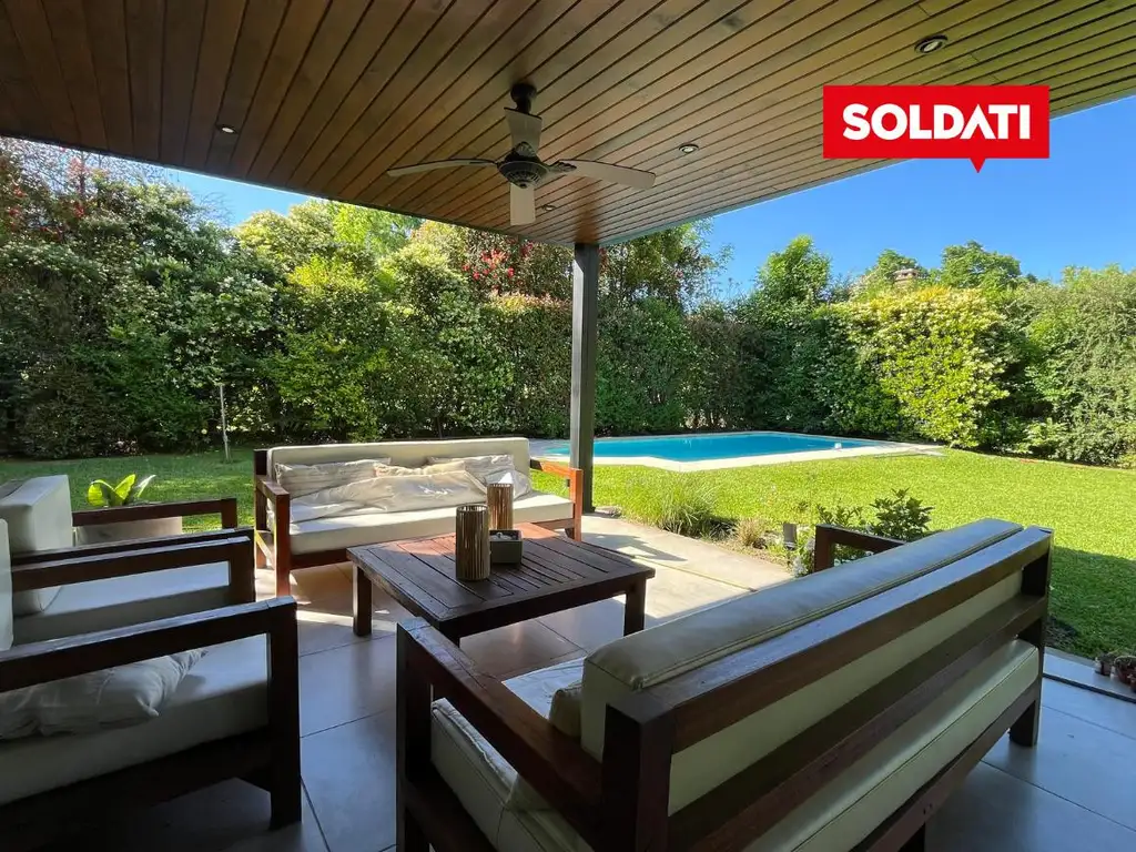 En el exterior, una gran galería con ventiladores de techo, parrilla y espacio de guardado invitan a disfrutar del verano al aire libre. El jardín cuenta con pileta (posibilidad de cerco con costo adicional) y entrada para autos.