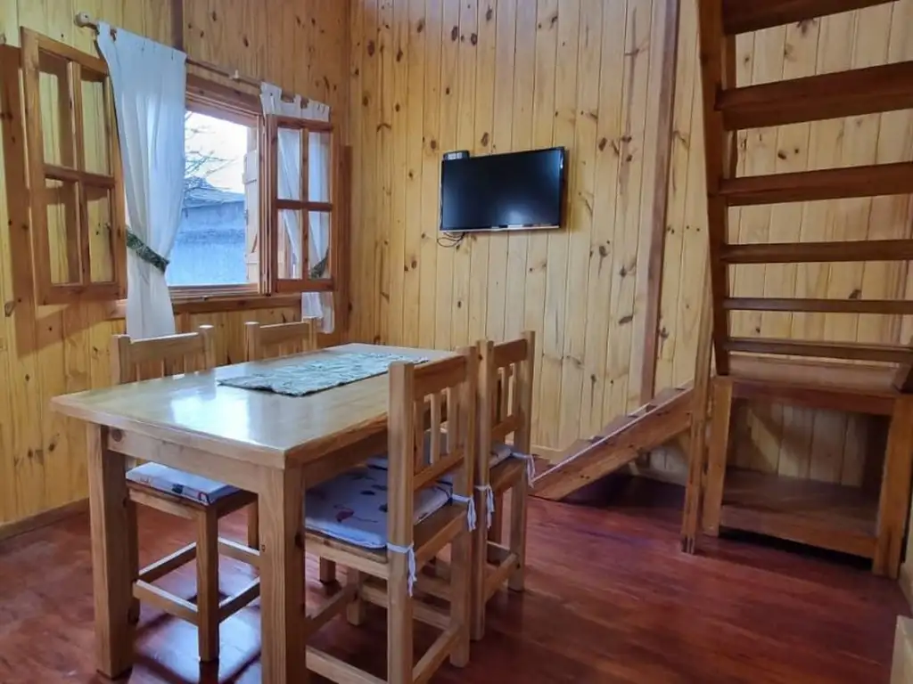 Cabañas equipadas para 4 personas , se dispone en planta baja con un living-comedor, cocina , baño y dormitorio matrimonial, planta alta cuenta con una habitacion con camas individuales. Parque con parrillita y trotadora para el auto. Cuenta con todos los servicios incluyendo internet y directv prepago.