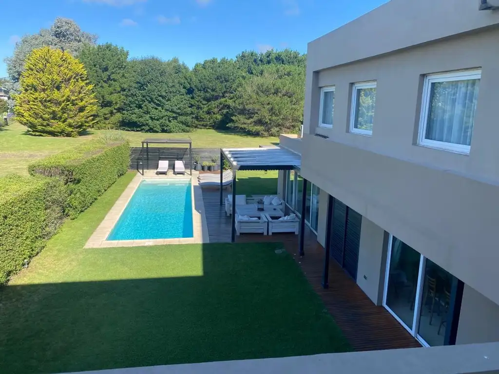 La casa cuenta con : planta baja , recepción , living con hogar ( proyector cine ) cocina , comedor , isla , horno eléctrico , anafe a gas y hornallas de cerámica eléctricas , freidora , lavavajillas, lavedero lavar ropa y seca ropa ,heladera y heladera auxiliar bebidas , grill eléctrico , microondas , cafetera filtro y cafetera cápsulas , baño con ducha , quincho con star televisión , parrilla gas y leña , exterior , jardín invierno con star , pileta 13x 3 mts , galería con living , solárium , reposeras ( 8)