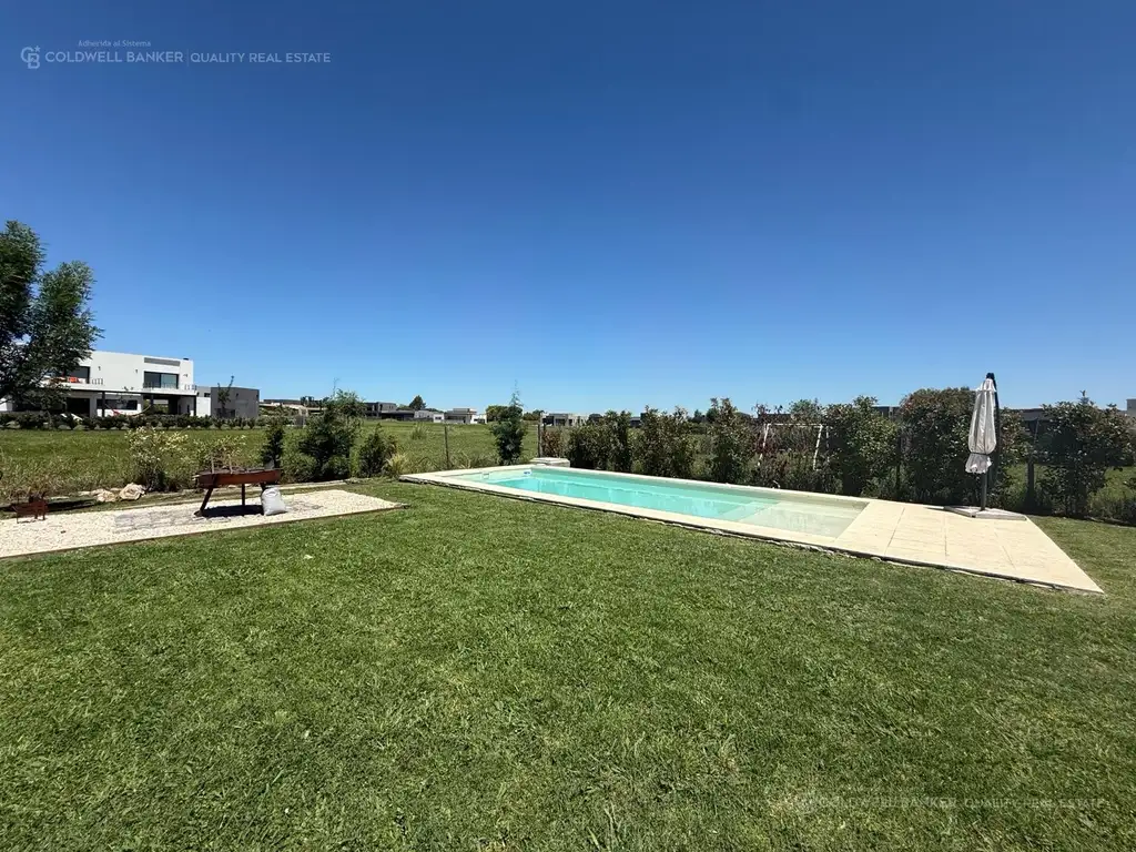 La pileta de 8 x 3, el toilette exterior y el sector fogonero completan un entorno pensado para el relax y la vida social.