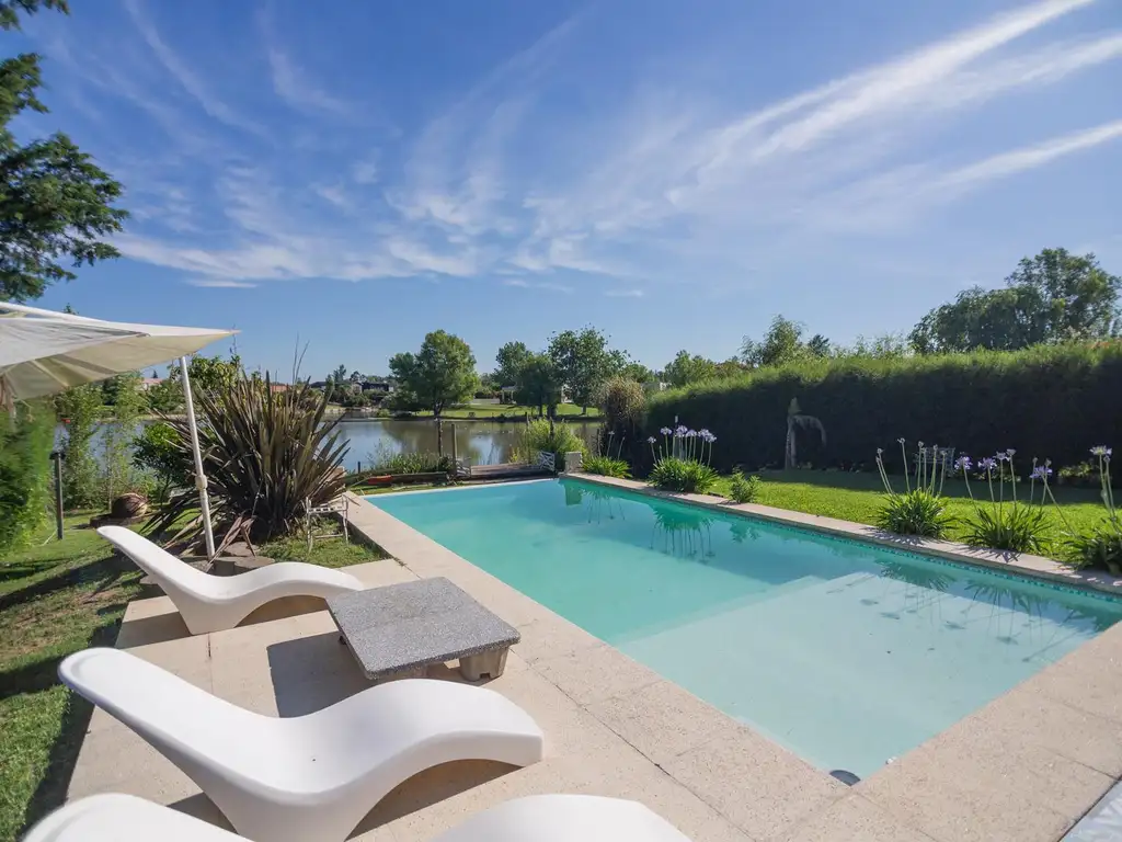 Exterior Galería con parrilla, piscina con borde infinito, Jardín con riego automático. Fogonero. Muelle con salida a la laguna