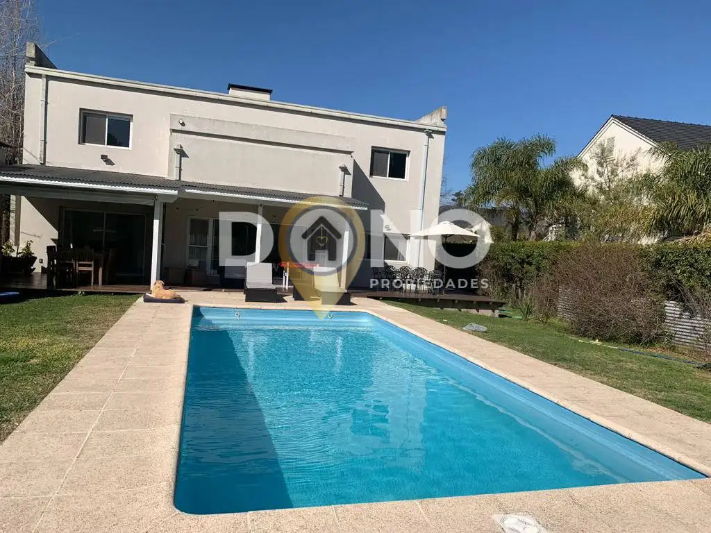 Espectacular Casa, en excelente estado desarrollada en dos plantas sobre un lote de 1065 m2. En la planta baja se encuentra el cocina-comedor diario, living con hogar en doble altura, lavadero, baño de servicio, toilette y sótano. Entrepiso con oficina/escritorio. En la planta alta cuenta con un dormitorio principal con baño con jacuzzi, vista al frente, 2 dormitorios secundarios con baño y placard de guardado en los pasillos. En el exterior, galería con deck de madera, parrilla a leña y con gas, piscina de 9x4 y amplio parque libre.