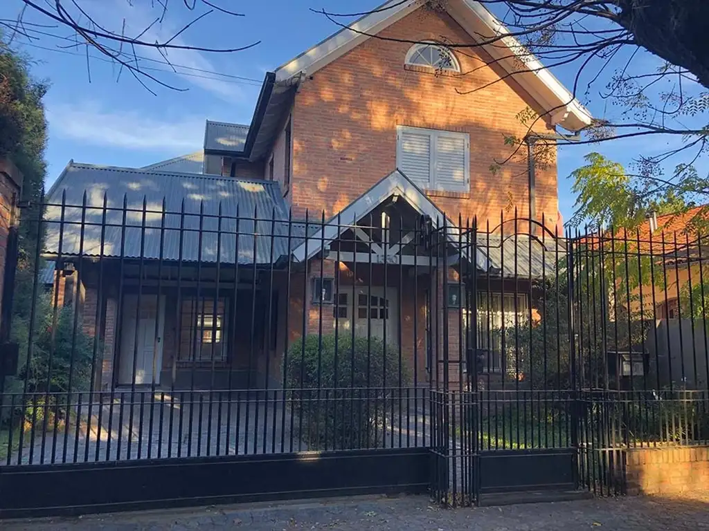 En planta baja consta de living con piso en madera tarugado - cocina comedor con ventana bowindows - con mesada bajo mesada y alacenas - horno y anafe con campana tipo isla ( de primera categoría) - amplio comedor diario con ventanal fijo con vista al parque - hogar a leña - toilette - escritorio o playroom con piso en madera tarugado - garage cubierto para 4 autos - parrilla - quincho con entrepiso y baño auxiliar - piscina 3 x 8 con filtro y venecitas - riego por aspersión - bomba sumergible - semi cubierto en parque para juegos- galería cubierta- extraordinario parque- frente de rejas con porton automatizado.