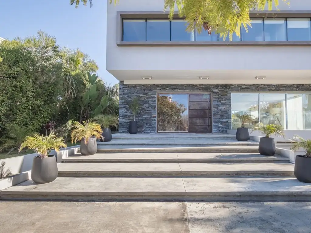 PB: Recepción con amplio hall . Gran living comedor con vista al frente y al jardín, hogar con doble frente , apto en living y comedor diario.Toilette de recepción.Baulera bajo escalera.Cocina con amplia mesada, espacio de guardado y barra desayunadora. Importante comedor diario con salida a la galería y vista al río.Carpintería de aluminio con apertura total, tanto en living como cocina, que permite integrar los ambientes con la galería.Escalera subsuelo para ingresar directo al lugar de guardado, habitación de servicio , lavadero, sala de planchado y baño de servicio y garage cubierto para dos autos con portón automático.