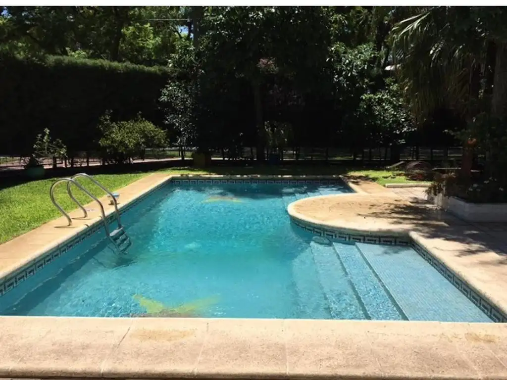Jardín con pileta climatizada, pérgola y quincho equipado. Se accede también por calle Chiclana.-