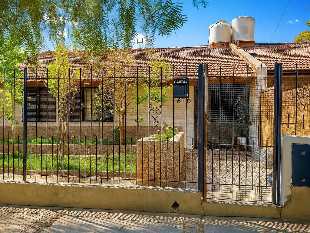 La casa cuenta con Living -comedor integrados, cocina amplia con bajo mesada y alacena ,lavadero totalmente cerrado, 3 dormitorios y baño. en el lateral izquierdo la cochera descubierta, un amplio quincho de construcción tradicional que se puede usar para guardado de auto.