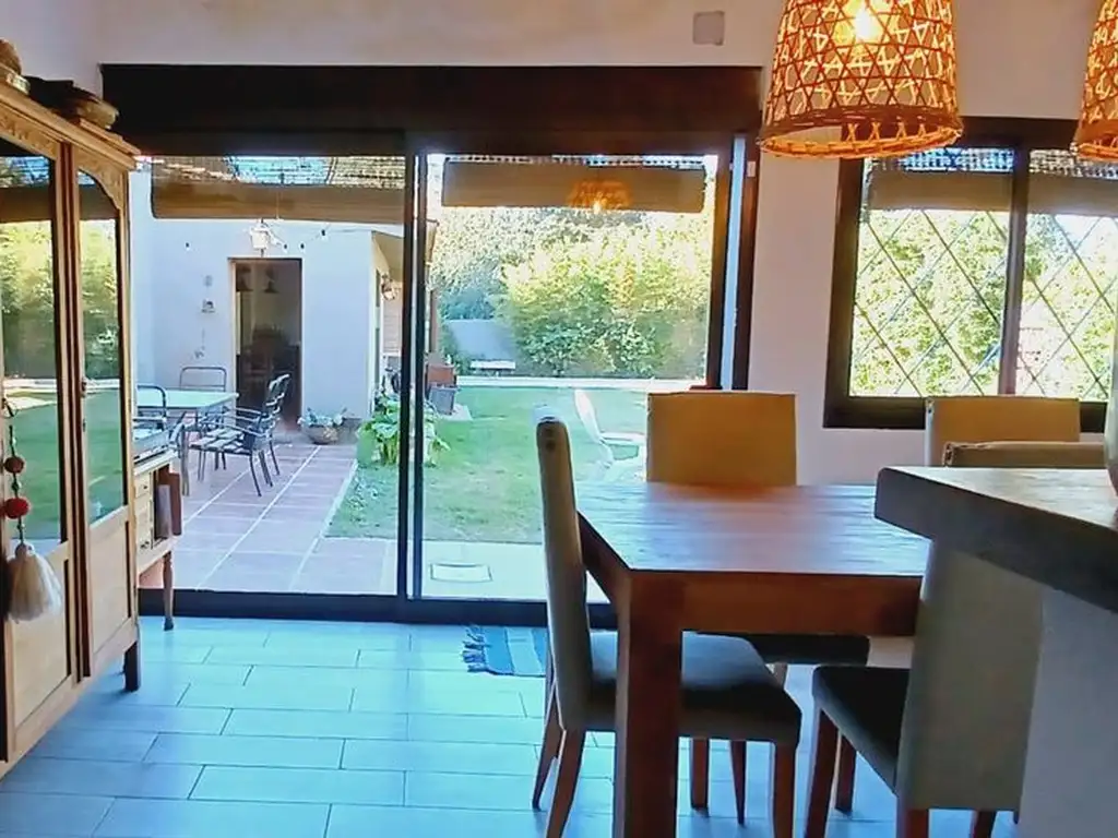 La casa consta de 4 dormitorios, 2 baños, living, cocina comedor, ingreso para 4 autos con acceso pasante hacia el patio trasero, donde encontramos un calido departamento de un dormitorio, baño y cocina comedor. Gran piscina y patio con espacio de distencion con parrilla.