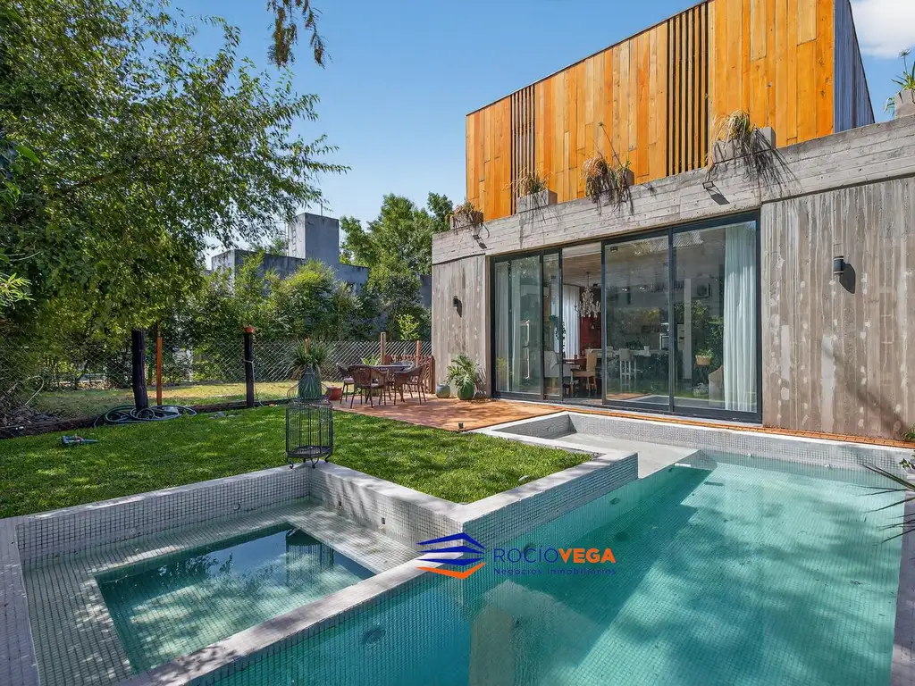 Hermosa casa de 2 plantas en estilo moderno, construida en hormigón, sobre un terreno de 340m. Cuenta con 220m cubiertos y 24 semicubiertos.