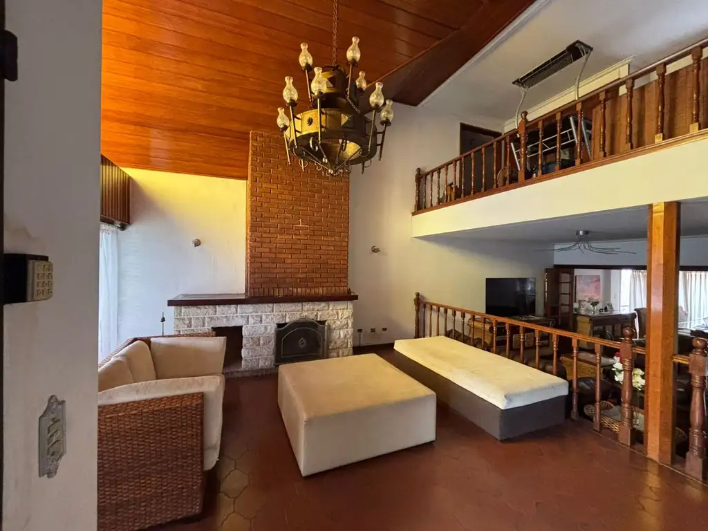 - Amplio living con hogar a leña ideal para reuniones con familia o amigos.