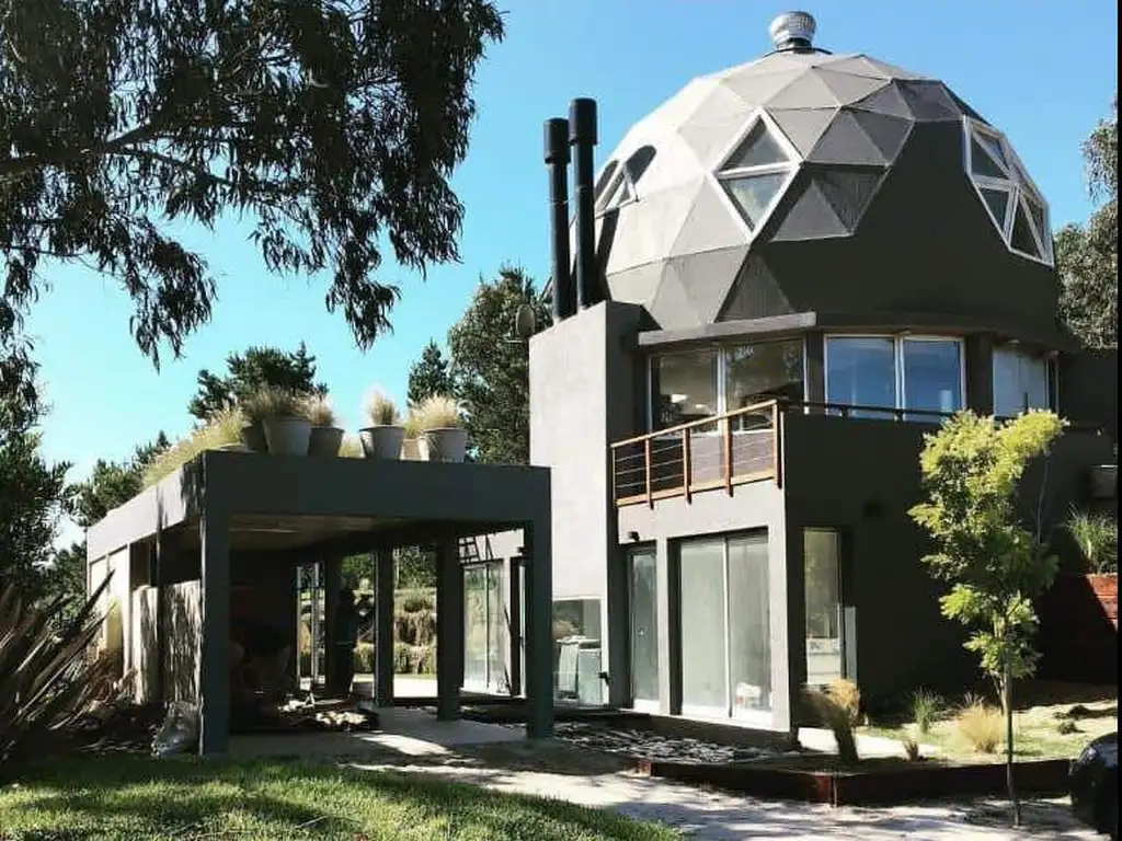 Saliendo hacia el fondo del lote nos encontramos con un diseño unico de jardin en tres niveles de terrazas que fijan el medano con recorridos circulares. A nivel de la calle se encuentra la piscina de forma redondeada con su ducha exterior y acceso al sauna. En el segundo nivel accedemos a un amplio espacio verde rodeado de pinos y especies autóctonas y en el tercer nivel un fogonero para poder asar una buena pieza a la cruz o disfrutar de un fogón nocturno.
