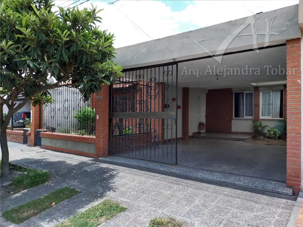 La casa cuenta con una gran cochera techada con losa, jardín, living comedor, cocina, baño y toilette, y 4 dormitorios. Se ha construído conectado a la cocina un espacioso estar comedor con salida al patio. Todos los ambientes se desarrollan en una sola planta.