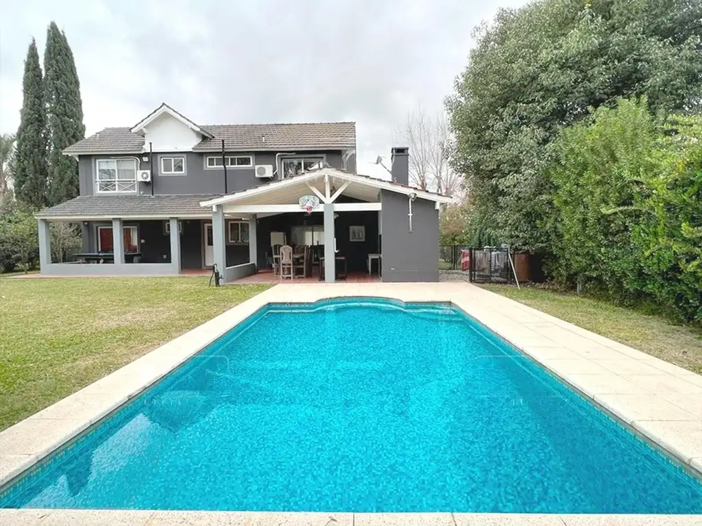 Galería a lo largo de toda la propiedad, en L, funcional como quincho, con su correspondiente parrilla.