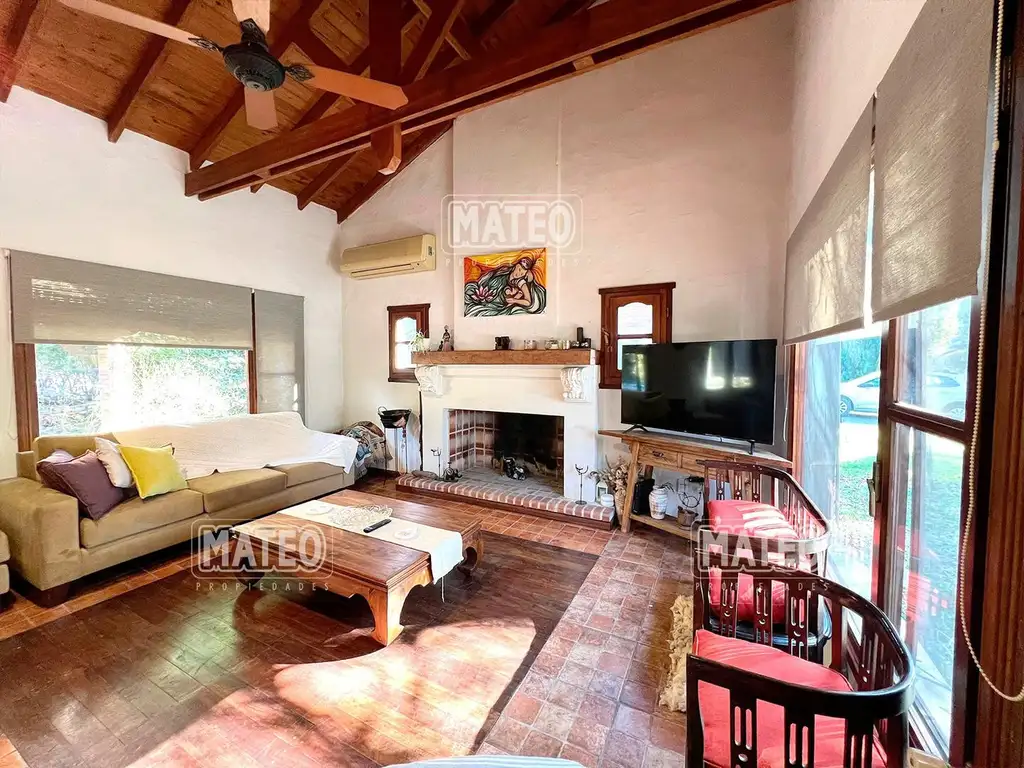 PLANTA BAJA: Hall de entrada. Amplio living comedor en doble altura con hogar a leña. Cocina comedor diario. Baño completo. Un Dormitorio. Cómodo lavadero interno. Dependencia de servicio o depósito. Hermoso quincho, muy bien equipado. Piscina. Jardín parquizado, con vistas a añosos eucaliptus.