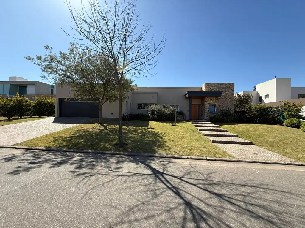 Esta desarrollada en una planta, con excelente distribucion, ambientes comodos y luminosos. Cuenta con aire acondicionado y radiadores en todos los ambientes, excelentes muebles y placares, quincho equipado con parrillas, horno, chopera y sector de guardado, cerrado con sistema de vidrios corredizos. Ademas tiene piscina climatizada, exteriores parquizados, tender cerrado y cochera amplia para dos autos con porton automatico.