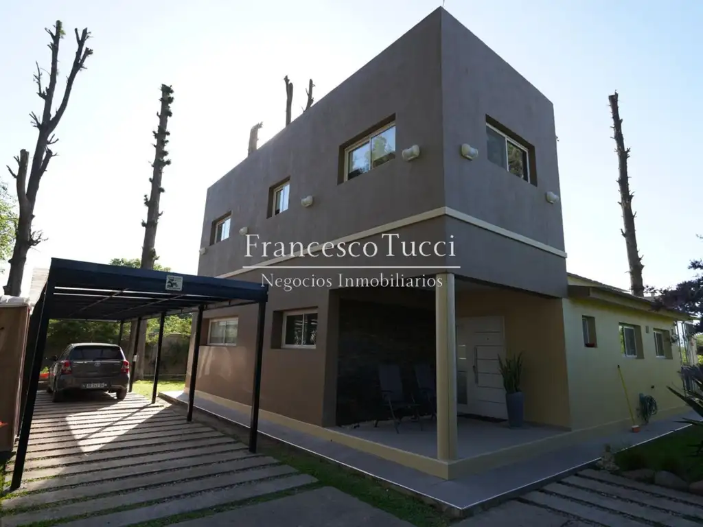 En el exterior: cuenta con un hermoso parque y una cochera semi cubierta para dos autos.