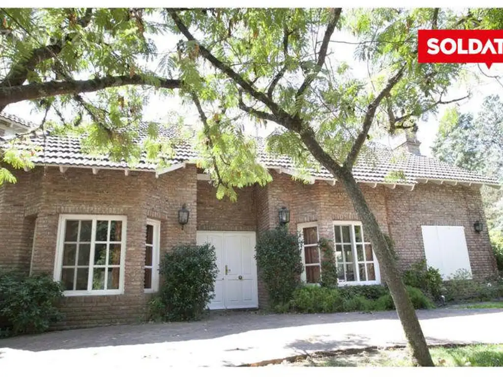 Subiendo a la planta alta encontramos la extensa suite principal, con sala de estar, escritorio y baño. La casa cuenta con calefacción a través de tiro balanceado y AA.La casa cuenta con una hermosa galería con toldos, parrilla y pileta cercada con amplio solárium. Un impresionante parque de 2900 m2 con añosa arboleda.