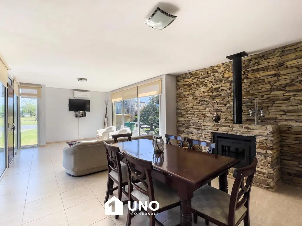 Hermosa casa ubicada en el barrio privado La Carolina Golf Country Club. Desarrollada sobre lote de 1500 m2. Cuenta con amplio estar comedor, cocina semi separada con isla, 3 dormitorios 1 en suite con vestidor y baño, y 2 con placares, 2 baños (1 completo), lavadero independiente y parrillero. Cochera para dos autos. Amplio jardín con pileta, quincho con parrillero y baño. Calefacción por radiadores en todos los ambientes por caldera dual. El barrio cuenta con cabina de vigilancia las 24hs, electricidad, gas, telefonía e internet. Ademas posee el Club House con pileta, solárium y vestuarios. Escuelas de golf y natación para todas la edades. Restaurantes, proveeduría y bar.