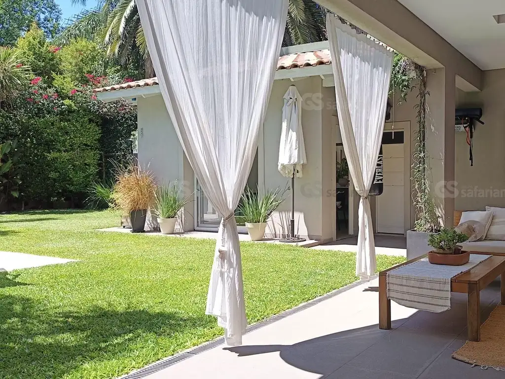 Desde el comedor se accede a una galería quién cuenta con una superficie aproximadamente de 30 metros para luego acceder al parque con su natatorio, sector de quincho, parrilla con su mesada, bacha y baño.