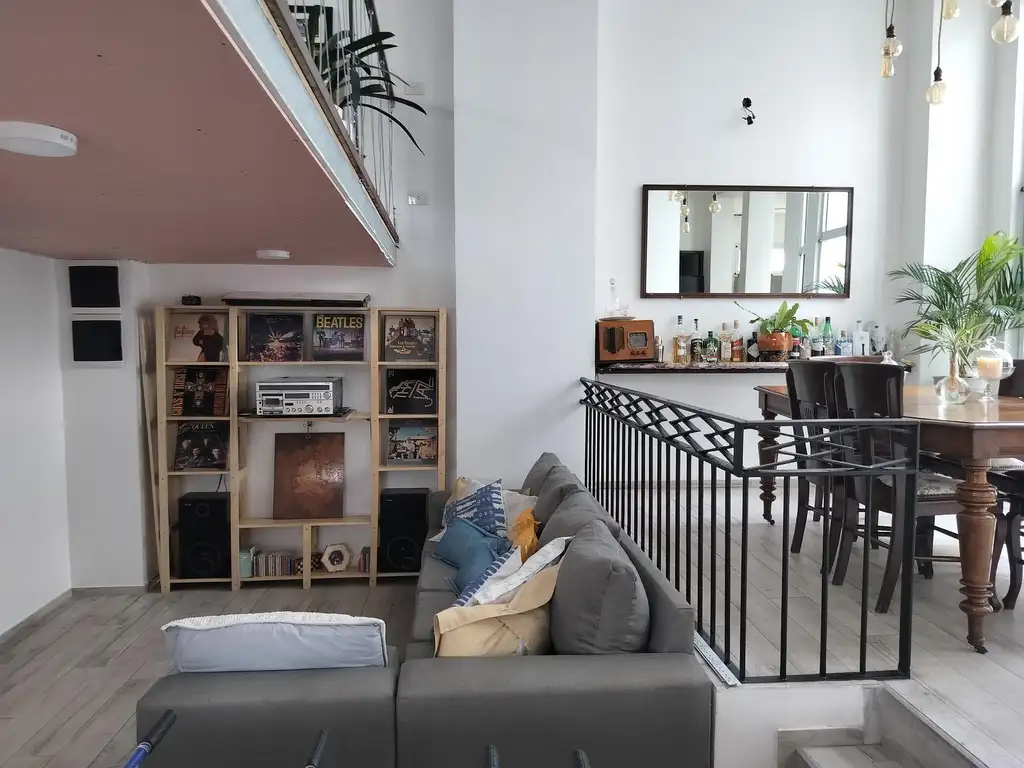 En la planta baja hay un recibidor, bicicletero, toilette de recepción, cocina integrada a un amplio living comedor totalmente renovado, acogedor, moderno y super luminoso, próximo a un patio de 16 m2. En el entrepiso hay un espacio ideal para escritorio, biblioteca o lugar para home office. Hay una gran baulera e ingreso a la cochera. Se instaló un aire acondicionado industrial que refrigera cada ambiente de la casa.