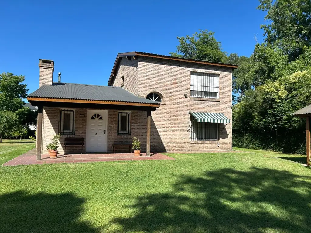 Ingresamos por portón de hierro corredizo, en automóvil directamente a la doble cochera semicubierta, a pocos metros el ingreso a la casa por un porche semicubierto, las paredes de 30 en ladrillo a la vista , con cámara de aire combinadas con sus techos en madera, brindan un ambiente de extrema calidez. El amplio living comedor posee un protagonista principal en su hogar a gas natural, centraliza un espacio perfecto para reuniones y entretenimiento, amplios ventanales con vista al parque , permiten una excelente entrada de luz natural. La cocina totalmente equipada se encuentra separada pero a la vez vinculada al living comedor, por un cómodo pasa plato y además posee lavadero cubierto, todo en perfecto estado de mantenimiento y uso.