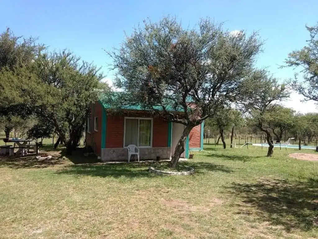Cada cabaña cuenta con 2 habitaciones, cocina comedor y baño. Cada habitación cuenta con ventilador de techo. La cocina está totalmente equipada. Cuentan con heladera, cocina, microondas y vajilla. Tenemos servicio de wifi y direct TV. Cada cabaña cuenta con parrilla individual. Mesa exterior y cochera . Tenemos para el uso compartido la pileta con solárium con reposeras y camastros para su comodidad. excelente vista hacia las sierras. Rodeados de paz y naturaleza.